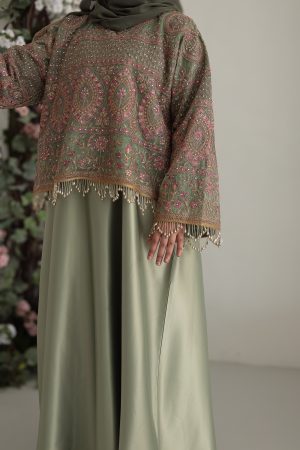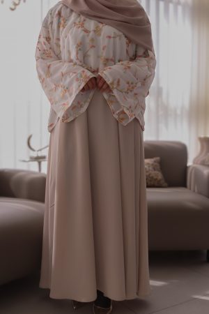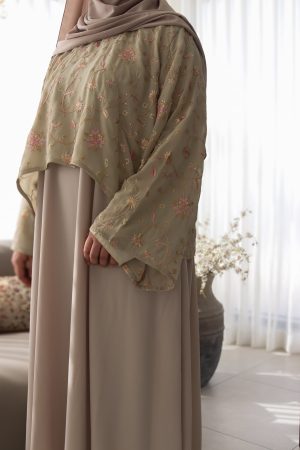 Bisht en tule brodé main – beige