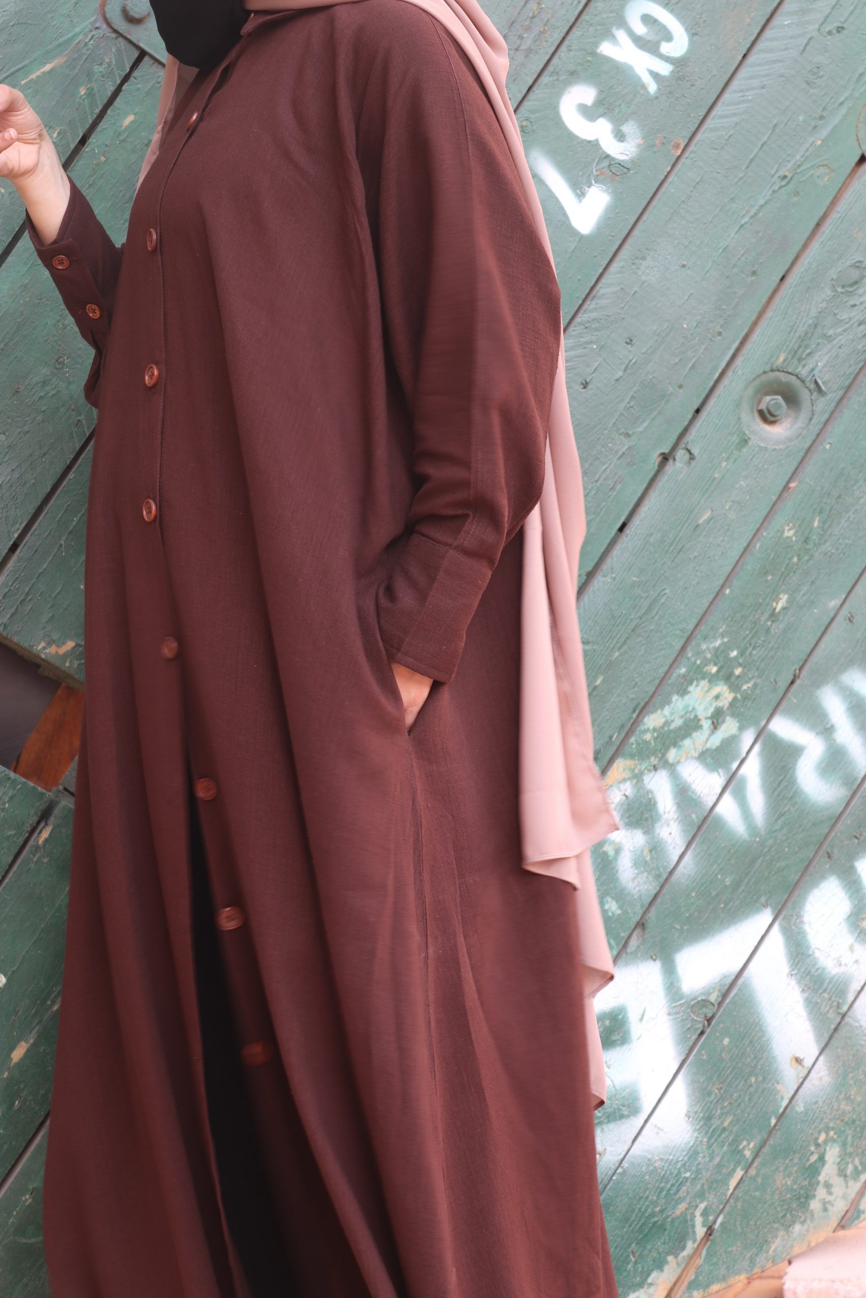 Abaya Chemise en lin – Nayrah marron