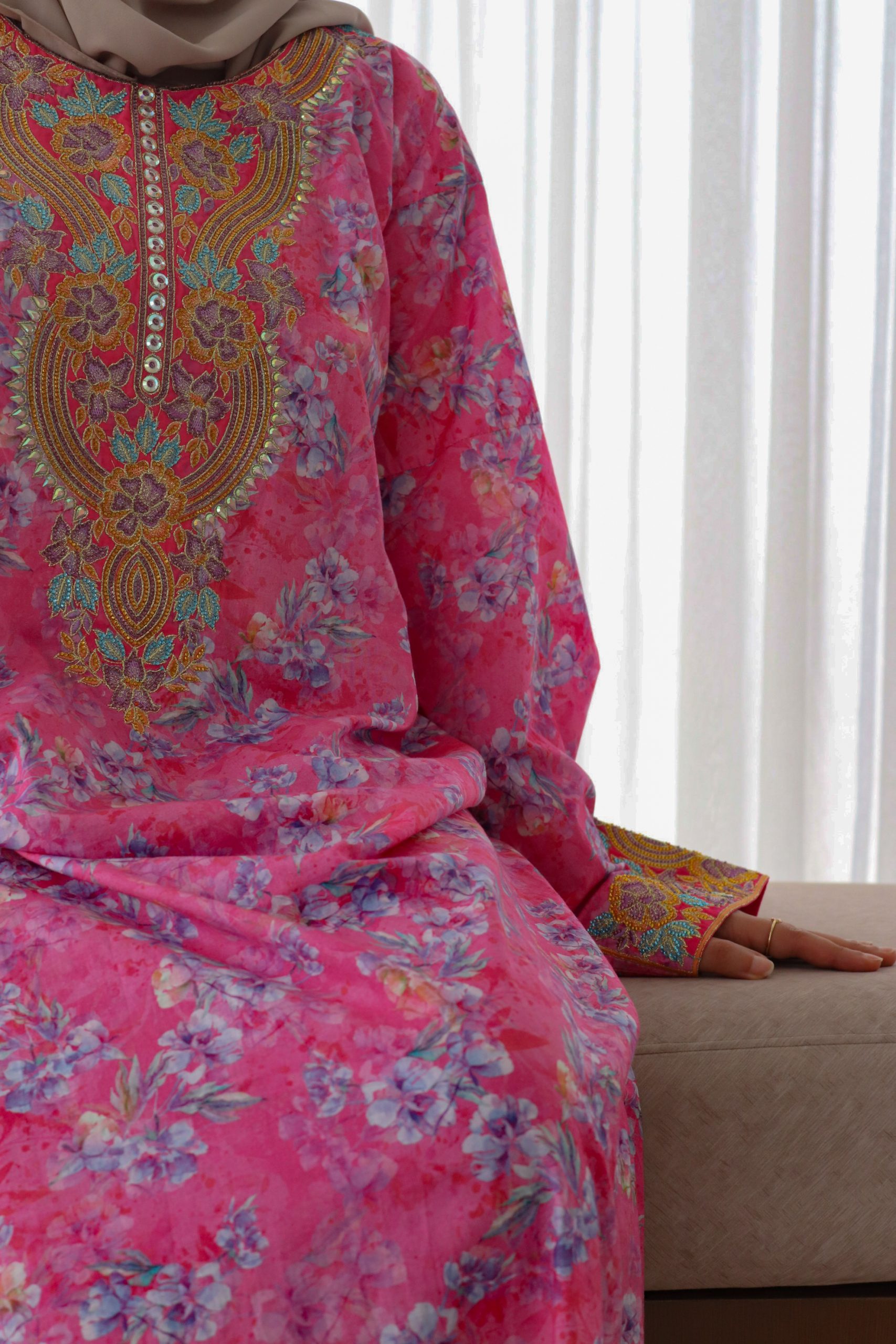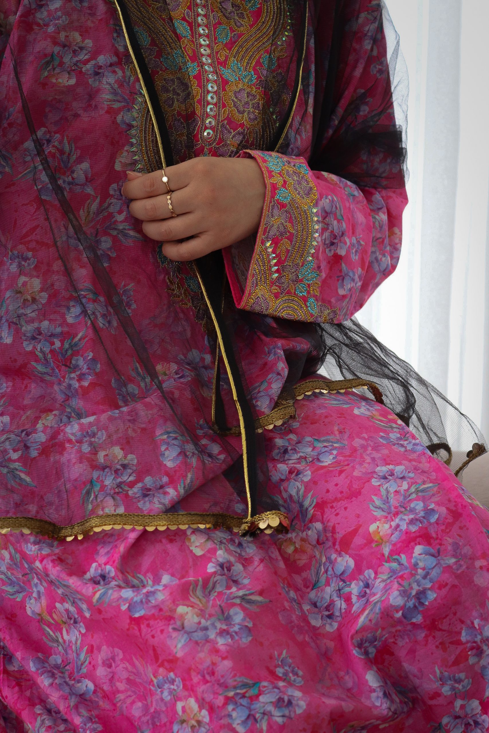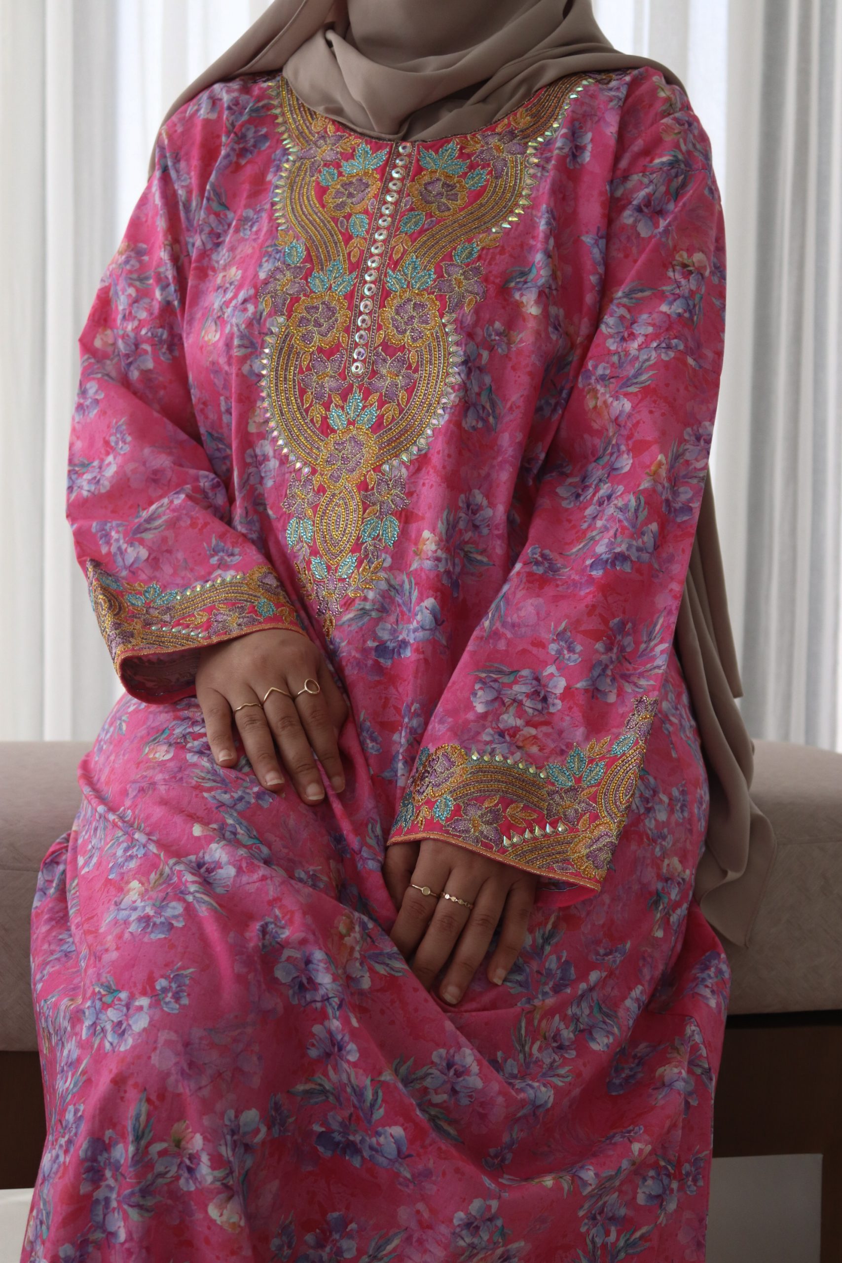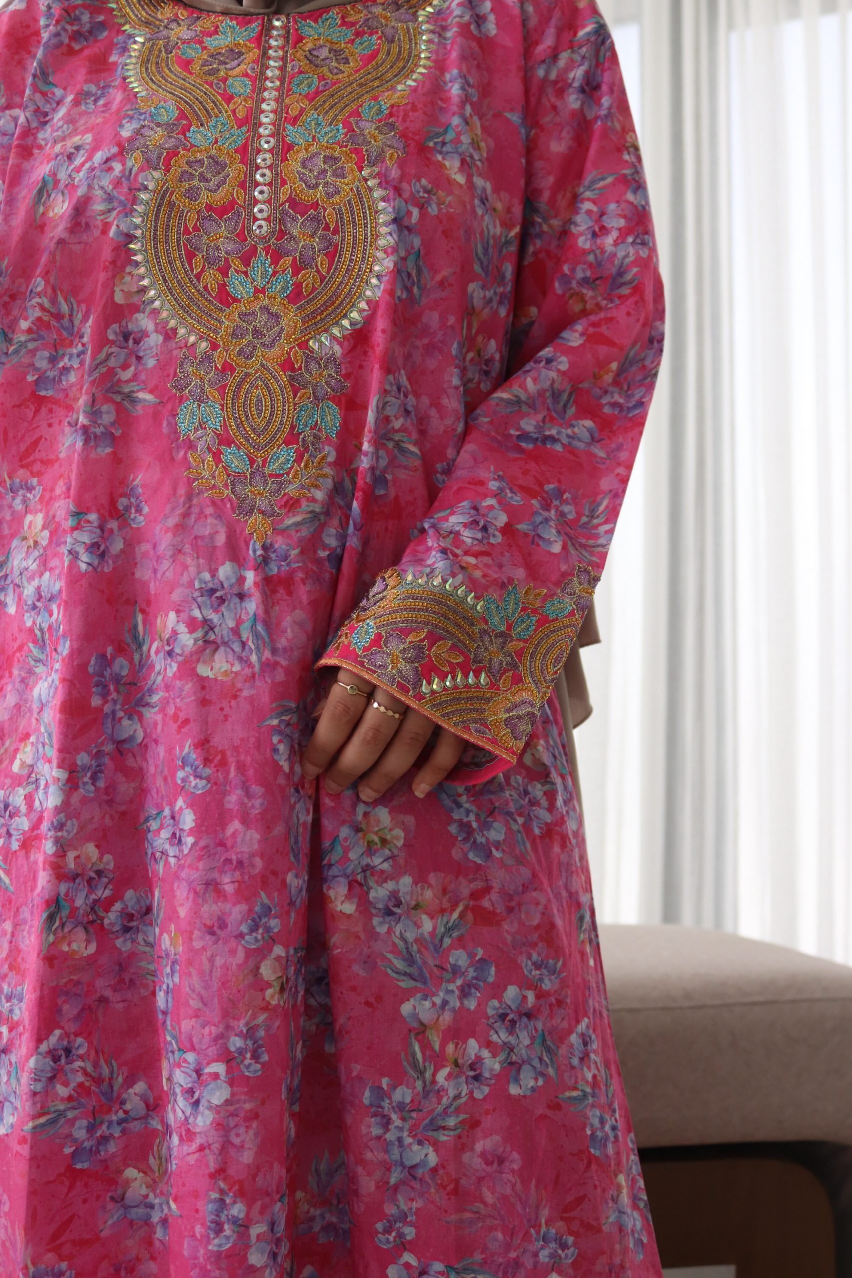 Mikhwar coton + voile – fuschia